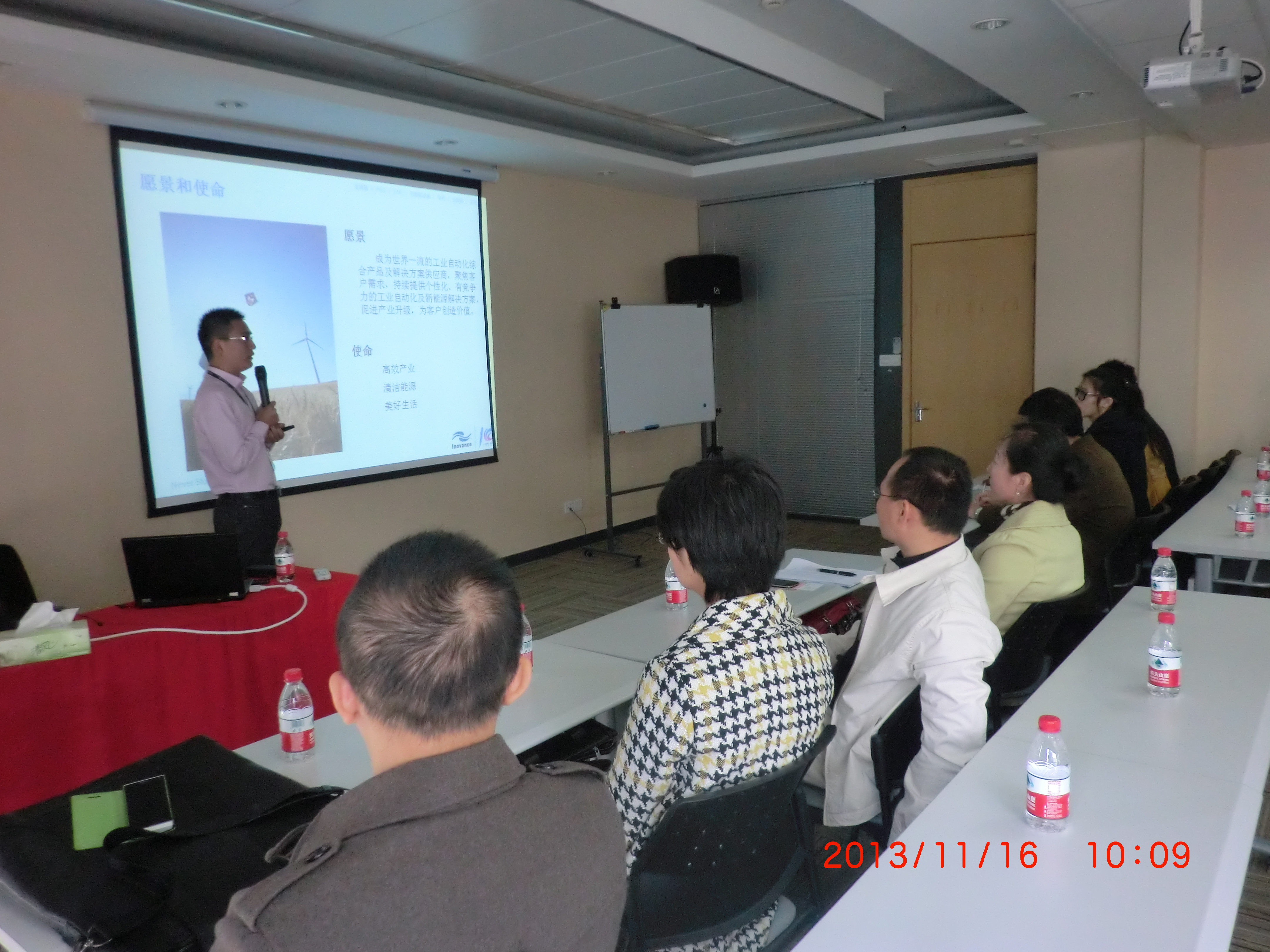 学院刘闯副院长给汇川公司参与座谈会的员工代表介绍学校的相关情况