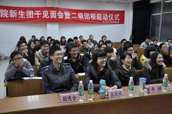 11月24日,taptap点点新生团干见面会暨二级团校启动仪式在将军路校区6102教室成功举办。学院团委书记季娟,团委常务副书记袁琬欣,团委副书记赵星星和学生会主席殷德全出席了见面会,学院团委新团干和2013级新生团干参加了会议。
