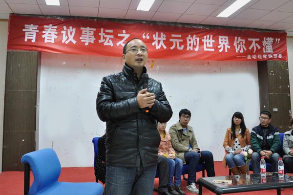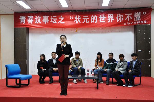 12月4日晚,青春议事坛之“状元的世界你不懂”活动于将军路校区艺术中心多功能厅举行,八名学生代表围绕“高考文科状元刘丁宁退学复读”事件展开了热烈的讨论。人文与社会科学学院教师娄和标、taptap点点团委书记季娟以及各年级辅导员作为评委出席了本次活动。 2013年,辽宁省本溪市文科状元刘丁宁以668(+10)分被香港大学中文系录取,并获72万元人民币奖励。10月初,刘丁宁离开港大,目前已经回本溪高中复读。对此,刘丁宁说,她追求更纯粹的国学,梦想进入北京大学中文系,北大也更适合自己。 八名学生代表首先表明了各自的立场,支持刘丁宁的学生认为这位女生的可贵之处,在于她遵从了自己的内心,敢于放下一些功利的考量,去追求契合自己心灵的国学梦、北大梦;反对的同学则认为刘丁宁刚到港大,没有充分了解港大及专业情况,就仓促退学,是一种不成熟的举动。接着同学们从北京大学与香港大学教学理念的不同为切入点,深入探讨了有关中西方教育和人才选取倾向上的差异、大学生的适应能力等问题,并且从“状元的世界你不懂”这一议题联系到了大学生的实际生活。八名学生代表在思辨的讨论中碰撞出了思维的火花,呈现了不同思想对同一事件的不同解读,展现了当代大学生有思想、有创造力的青春风采。在学生代表的交流讨论中,现场观众们也就“如果你是刘丁宁会做何种选择”及“你是如何适应大学生活”的两个话题展开了激烈的讨论,现场气氛活泼热烈而又井然有序。 最后,西方哲学博士娄和标对本次青春思辨活动进行了总结。他说道,我们每个人都有各自独特的价值取向和自由选择权。只要这样的价值取向和自由选择权没有违法乱纪,也没有违背社会伦理道德,那么我们每个人就都应该尽可能地理解其价值取向和自由选择权。