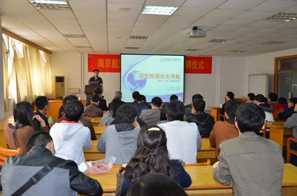 授聘仪式结束后,王大轶副所长作了题为“深空探测自主导航”的学术报告。首先,对深空探测自主导航的研究背景以及国内外研究现状进行了介绍,接着针对深空探测自动导航目前的研究难点以及相应的解决办法进行了深入浅出的分析和介绍,并以大量的图片对地面验证和飞行验证的相关情况进行了详细的介绍,最后,王大轶副所长与大家分享了自己的奋斗历程,呼吁在座的研究生积极进取,献身航天,报效祖国。报告结束后,师生们就学术报告的内容,与王大轶副所长进行了充分的交流,学术报告会在热烈的掌声中圆满结束。