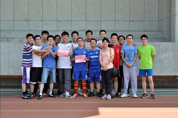 比赛中,taptap点点研究生辅导员刘斐文老师也亲临现场观战并不时为两队队员加油助威,比赛结束后,刘斐文老师为两队代表队颁发了冠、亚军奖杯、军奖牌和奖状。本届赛事中多场比赛表现突出的高伟俊同学获得了最佳球员称号。至此,taptap点点第八届研究生文体月已接近尾声,欢迎同学们继续关注即将举行的研究生文体月压轴大戏――篮球赛决赛。