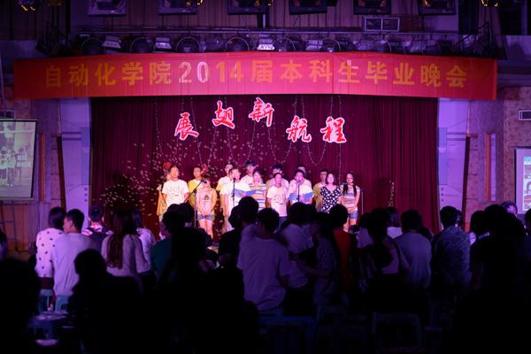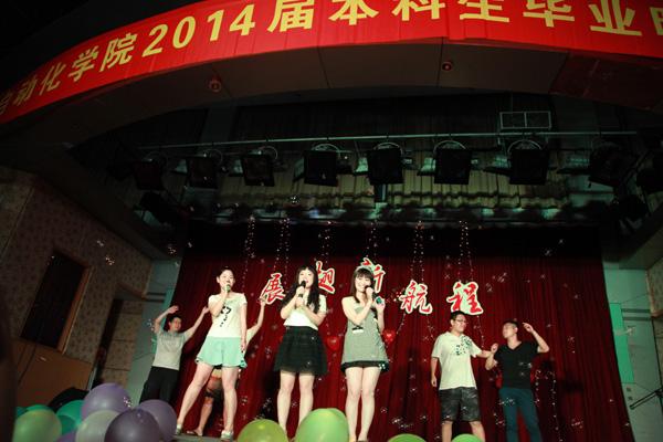 晚会上毕业生们自己编排的节目陆续上演,有原创的音乐,有搞怪的话剧,有煽情的歌曲,有性感的舞蹈,有紧张激烈的互动游戏……整场晚会欢声笑语,精彩连连。毕业季系列活动颁奖中,各班运动健将接连亮相,掌声不断。学院辅导员老师集体编排的特约节目《你好,再见,0310》引着我们回忆四年的点点滴滴,引着我们回味那难忘的青春记忆。