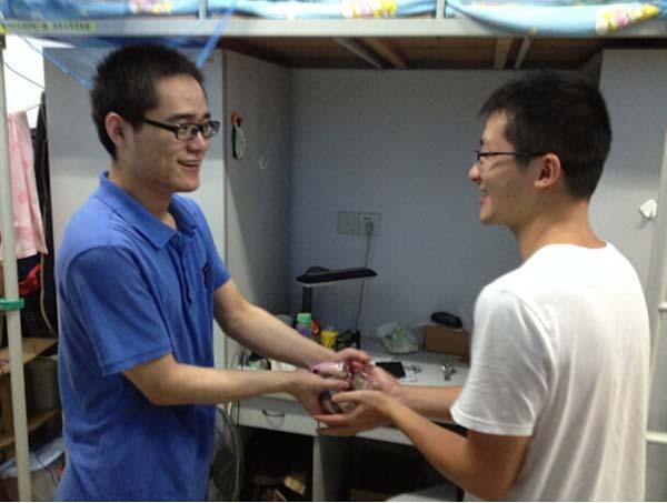 时临中秋佳节,为使班级同学度过一个幸福圆满的中秋节,9月8日,taptap点点官方网站13级研究生5班爱心小分队在该班书记和班长的带领下,来到班级学生的实验室和宿舍,为大家送上月饼,使大家感受到了浓浓的过节氛围。