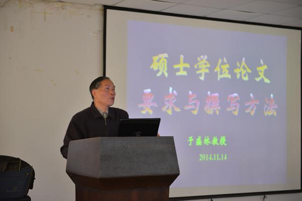 讲座开始,主持人简单介绍了研究生毕业论文的相关日程安排。接着,于盛林教授就毕业论文撰写的具体细节进行了深入的指导。从论文格式的基本要求,到论文内容的创新内涵;从学位论文的基本框架,到公式图表的符号编辑,于教授都进行了细致周到的讲解,于教授清晰的逻辑、详细的讲解、幽默的语言激发了同学们的认真思考。作为具有多年审查论文经验的老专家,于教授对审核过程中的细节及注意事项熟稔于心。最后,于教授和同学们展开深入的交流,耐心地解答同学们提出的问题。听完讲座,同学们以热烈的掌声感谢于盛林教授为大家做的精彩报告,纷纷表示会以严谨认真的态度对待研究工作,以实事求是的态度评价研究成果,将完成毕业论文看作是创作与提升的过程。