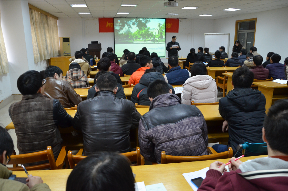 当天下午两点三十分在明故宫校区智能楼四楼学术报告厅,林祯水教授和石碰教授分别作了有关机器学习和模糊控制方面的学术报告。报告会由taptap点点官方网站院长姜斌教授主持,控制系师生积极参加了报告会。林祯水教授首先对阿德莱德大学及其电气与电子工程系的教学、科研和博士联合培养进行了详细的介绍;随后报告了利用机器学习算法对目标检测和目标识别问题中的大数据集处理方法,并介绍了实时环境下实现矩阵算法的计算机体系结构。在此之后,石碰教授对模糊控制在实际控制领域中的重要应用价值进行了阐述,重点报告了模糊输出跟踪控制、模糊滤波器设计和基于模糊逻辑的模型降阶控制方面的最新研究成果。