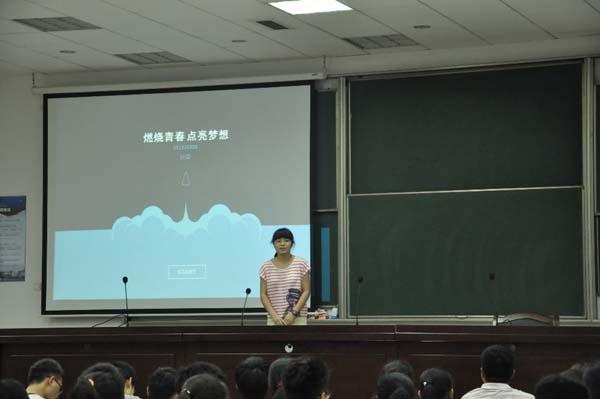 接下来,季老师带领大家回顾了2014年社会实践的六大主题以及六大专项,她阐述了社会实践的基本流程,即“实践选题,组建团队,开展实践,总结评比”,同时也解决了同学们“实践活动一般具体以何方式开展”“开展社会实践需要注意什么”等疑惑。她就生态环保、故乡之旅、专业实践、公益圆梦、梦想启航、社会调研六个板块的实践内容重点介绍了全校有代表性的团队,并共享了校园吉尼斯、个人成就奖、精彩图片等单项奖的优秀案例。她寄语同学们暑期社会实践需要怀揣热情,不怕苦不怕累,更需要充分准备与全情投入。