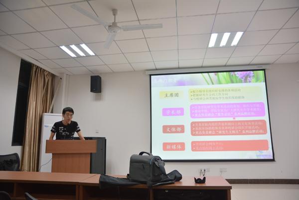 19点30分,研究生会各位成员有序来到报告厅,迎新见面会正式开始。首先,由学术部部长吴林峰同学致欢迎辞并介绍了研究生会基本制度规范。随后,研究生会主席周聪发表讲话,他首先代表研究生会对2015级新成员的加入表示了热烈的祝贺和欢迎;接着介绍了研究生会在校担任的角色、基本架构和各部门职能,并结合自身经历,对2015级的新成员们提出了几点建议和要求,希望大家能踏实认真的工作,为同学做出更好的服务。讲话结束后,会场立刻响起热烈的掌声。大家期待的目光和热切的掌声无不表露对开启研会生活的激动和做好一名坚定研会人的决心。