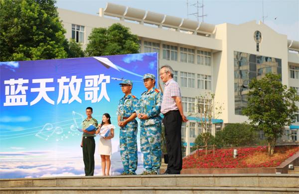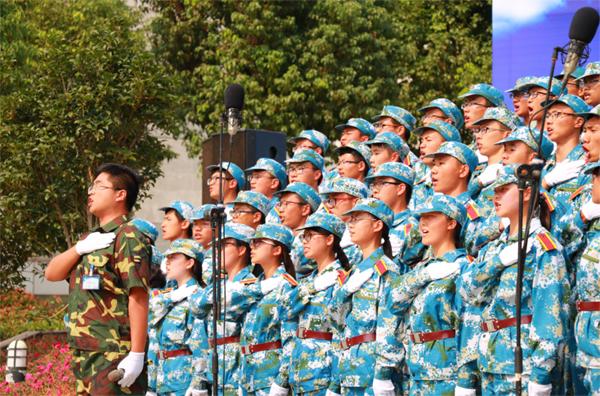 9月18日下午,将军路校区国旗广场上,taptap点点官方网站100名大一新生以一曲《当那一天来临》荣获“蓝天放歌”2015级新生军训赛歌会一等奖。