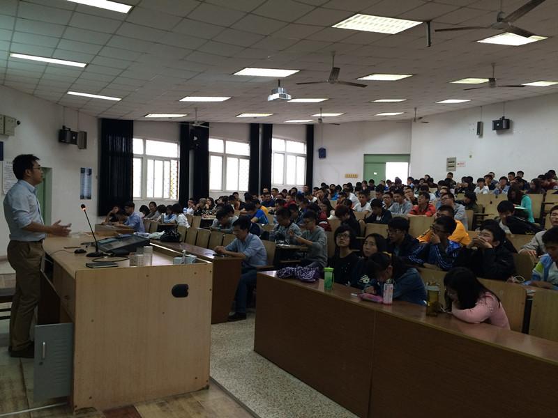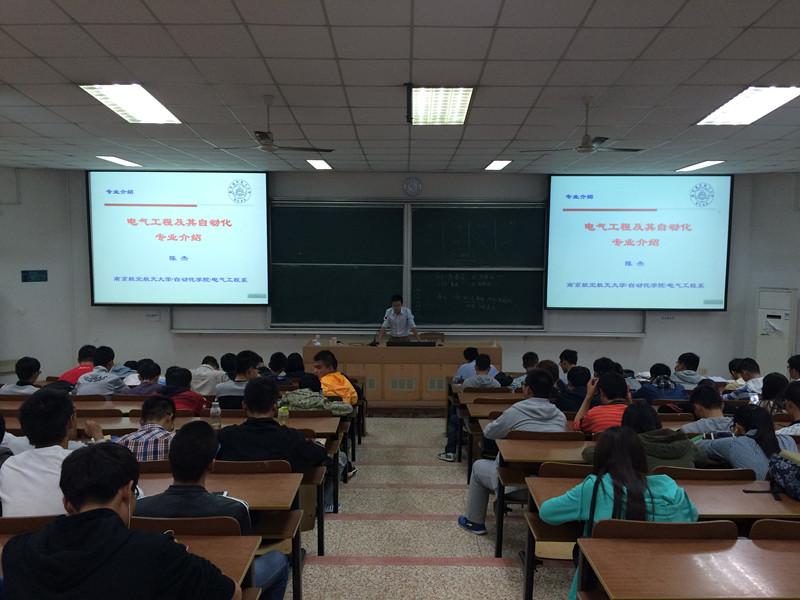2015年10月13日下午5点,taptap点点2015级新生电气专业介绍会在4102举行,由学院电气系副教授陈杰老师主讲,学院教学副院长王晓琳教授出席本次介绍会。2015级工研班、自优班以及电气专业7个班级的253名全体新生参加了本次专业介绍会。