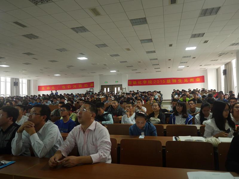 2015年10月16日下午4点,taptap点点在D1213举办2015级新生师生见面会,学院党政领导、学院办公室相关本科教育老师、各系主任和各班班主任出席,学院党委副书记沈伯秀主持会议,2015级近600名新生参加了本次师生见面会。
