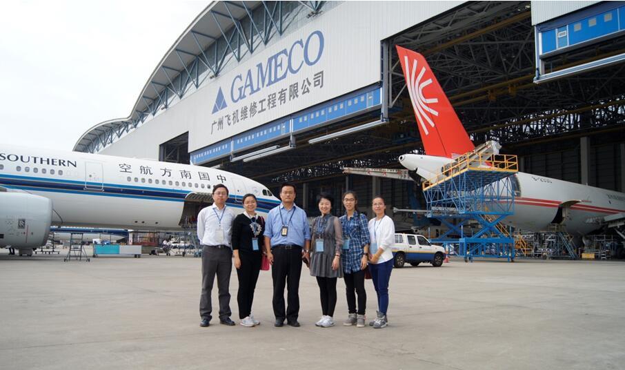 图4 参观广州飞机维修公司-GAMECO并与校友合影