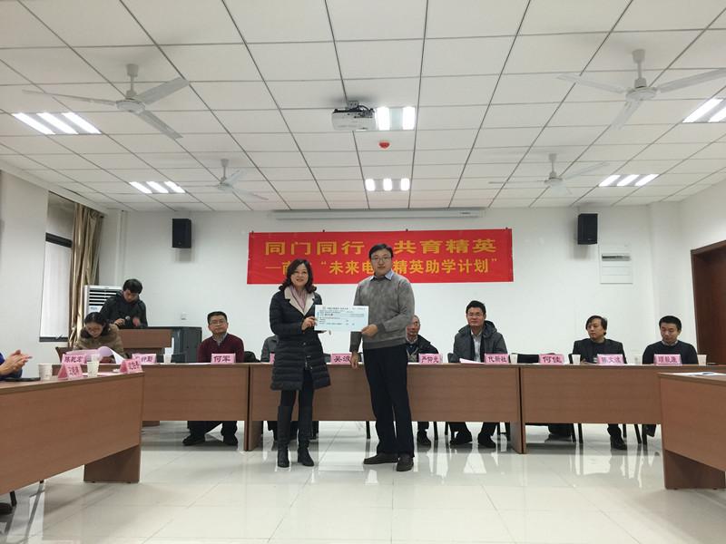 12月27日上午,“同门同行,共育精英――南航未来电源精英助学计划”第一期助学金发放仪式及座谈会在将军路校区taptap点点官方网站1号楼303报告厅举办。本次助学活动的发起人83岁的南航taptap点点官方网站电气系严仰光教授和深圳麦格米特公司副总代新社亲临本次活动现场。广东易事特电源公司总裁助理何佳,南京国臣公司总经理陈文波,俊盟科技总经理何军等助学金捐赠单位代表,及捐赠院友代表施耐德上海研发总监吴波、深圳日海公司副总裁王大庆、启盘科技总经理顾毅康、taptap点点官方网站教授陈乾宏也参加了活动。活动还邀请到校发展联络部副部长张钟勤老师,taptap点点官方网站副院长王晓琳教授等领导。辅导员汤呈懿、50名受助学生参加了本次活动。会议由taptap点点官方网站党委副书记沈伯秀主持。
