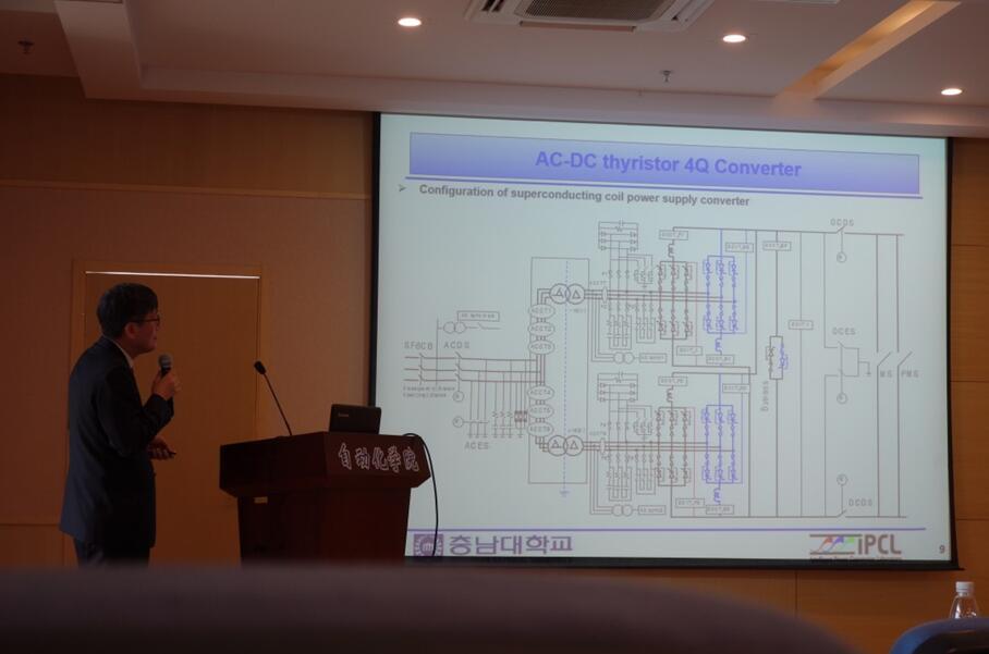 在近45分钟报告中,Hanu Cha教授首先硬件实物仿真介绍在用于超导线圈高功率密度晶闸管变换器系统中验证,随后介绍了系统的构建和半实物仿真的验证,最后搭建实验平台进行半实物仿真研究。师生们就学术报告内容与Hanju Cha教授进行了热烈充分交流和探讨。
