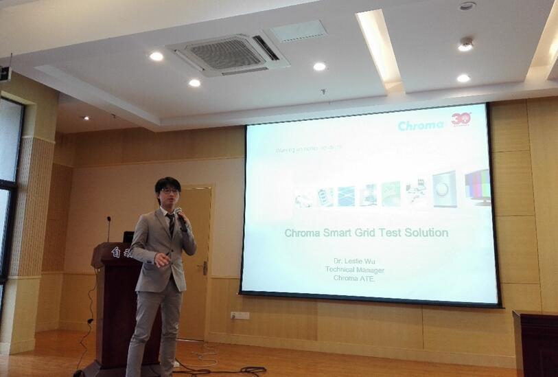 12月30日上午,Chroma公司 Leslie Wu博士来taptap点点参加2015 International Workshop on Advanced Technologies in Power Electronics and Motor Drivers,并在taptap点点官方网站taptap点点官方网站1号楼5楼报告厅举行作了题为“Chroma Smart Grid Test Solution”学术报告。taptap点点官方网站邢岩教授主持报告会,taptap点点官方网站部分老师、研究生以及企业行业专家参加并聆听了报告。