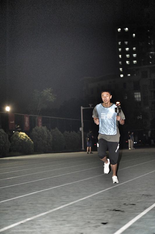 7:20,运动员就位,学院党委副书记沈伯秀老师将象征着五四精神的火炬郑重交给了第一棒徐义。发令枪响,火炬手们冲出起点,高举的火炬瞬间点燃了现场所有观众的激情,呐喊声、欢呼声、助威声、音乐声交织成一片。火炬手们迅速消失在了夜幕中。