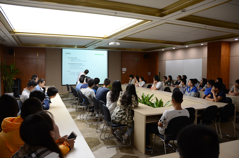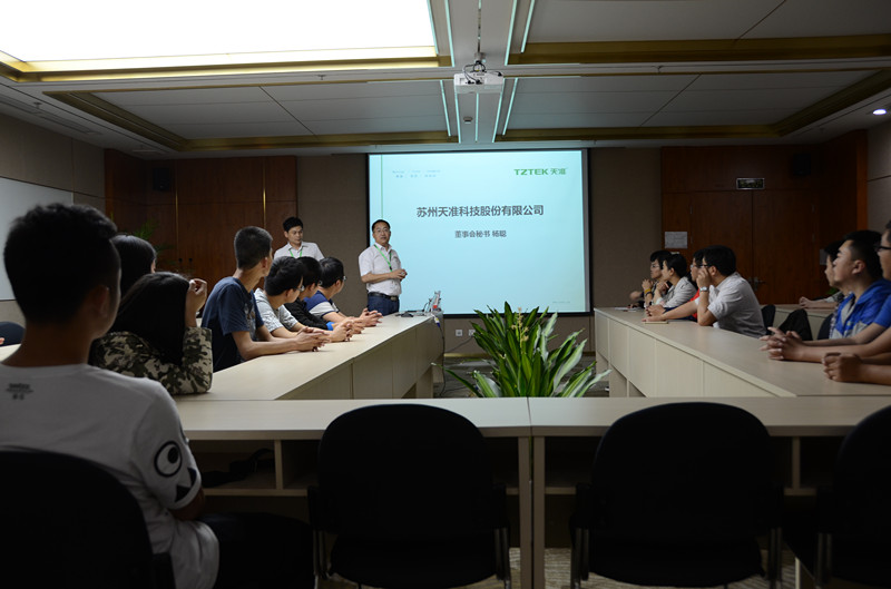 天准公司(TZTEK Company)是此次企业探索的最后一站。通过公司总经理助理耿悦彬先生的介绍,了解到天准目前拥有精密测量仪器、测量自动化设备、检测自动化设备和组装自动化设备等四大产品系列,其精密测量仪器是国内唯一自主研发的高端品牌,多年来稳居行业榜首,众多自动化设备与解决方案已成功运用到包括电子、汽车、食药等行业的现代化生产线。立足于现代工业、智能工业、未来工业领域的天准科技,在招聘专业上与taptap点点官方网站各个专业完全对口。在互动交流环节,耿总提出了对青年学生的期望,希望刚毕业的大学生工作更踏实、扎实,校园里没有学到的或者没学扎实的可以在工作岗位上得到提升,用行动展现自己的实力。