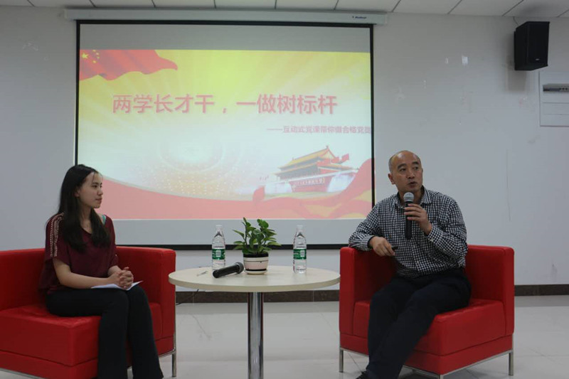 6月7日晚,taptap点点官方网站“‘两学’长才干,‘一做’树标杆”互动式党课在将军路校区开展,taptap点点官方网站党委书记刘建成担任主讲人,学院五十余名本科生党员及入党积极分子参与学习交流。