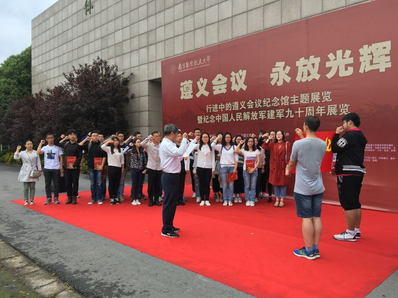 毕业班的“大哥哥”“大姐姐”们先是在来自遵义的小讲解员的带领下重温了革命历史缅怀了革命前辈,接受了一场别开生面的爱党、爱国教育。之后,同学们排好队,面向鲜红的党旗,共同举起右手,在老党员张松祥老师的带领下庄严宣誓。铿锵有力的宣誓声,表达了党员们对信念的坚守和为共产主义事业奋斗终身的决心。宣誓结束后,张老师为党员们上了最后一堂党课。他从自己入党的经历说起,回顾了自己的青葱岁月,以一个长辈的身份与党员们谈心谈话。最后,他对即将毕业的同学们提出了三点希望。一是希望大家不忘初心,牢记自己的入党动机,坚定不移的实现自己的人生理想;二是希望大家在新的岗位上争创一流,追求卓越;三是希望同学们感恩母校,南航是所有人的终身背景和精神家园。张老师的尊尊教诲,党员们纷纷表示将牢记在心,时刻不忘。