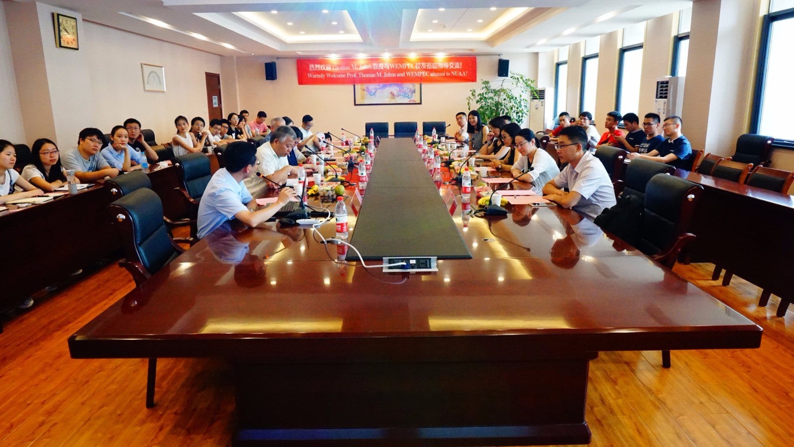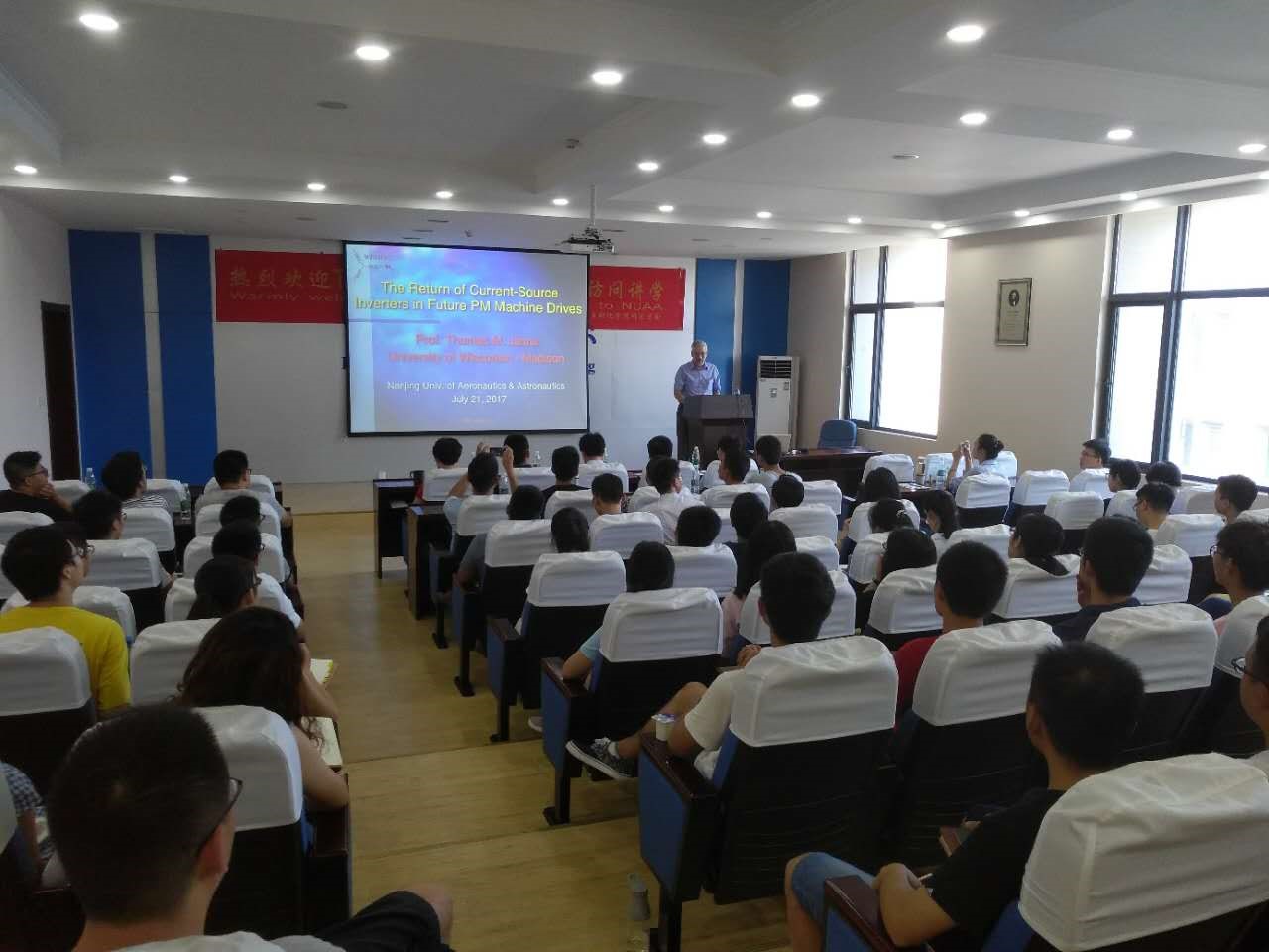 Thomas M. Jahns教授访问南航期间,来自清华大学、浙江大学、东南大学等国内13个高校的近20位WEMPEC校友齐聚南航,研讨电机与电力电子学科前沿问题。会上,张卓然教授系统介绍了南航多电飞机电气系统工信部重点实验室的研究方向和研究成果。清华大学高大威老师、北方工业大学张晓光老师及南航郝振洋老师分别就新能源电动汽车、电机新型控制算法及多电/全电飞机的关键技术做了精彩学术报告。