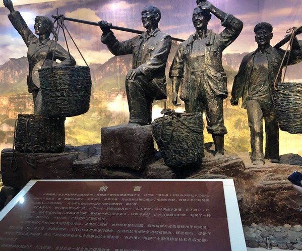 最后,同志们参观了扁担精神纪念馆。纪念馆展出了各类珍贵照片、实物、实景,从不同的角度展示了“扁担精神”的诞生与传承。70多年来,石板岩供销社干部职工在极其恶劣的自然条件下,凭借“艰苦创业、勤俭办社、一心为民、开拓创新”的坚定信念和坚强意志,以肩膀挑起了连接党群、沟通城乡的重任,以脚板翻山越岭走出了一条服务三农的阳光大道,铸造了影响一代又一代的“扁担精神”。供销社的干部郭金富往返爬行30多里的山路买来6分钱的螺丝钉以解群众犁地的燃眉之急的事迹给大家留下了深刻印象。