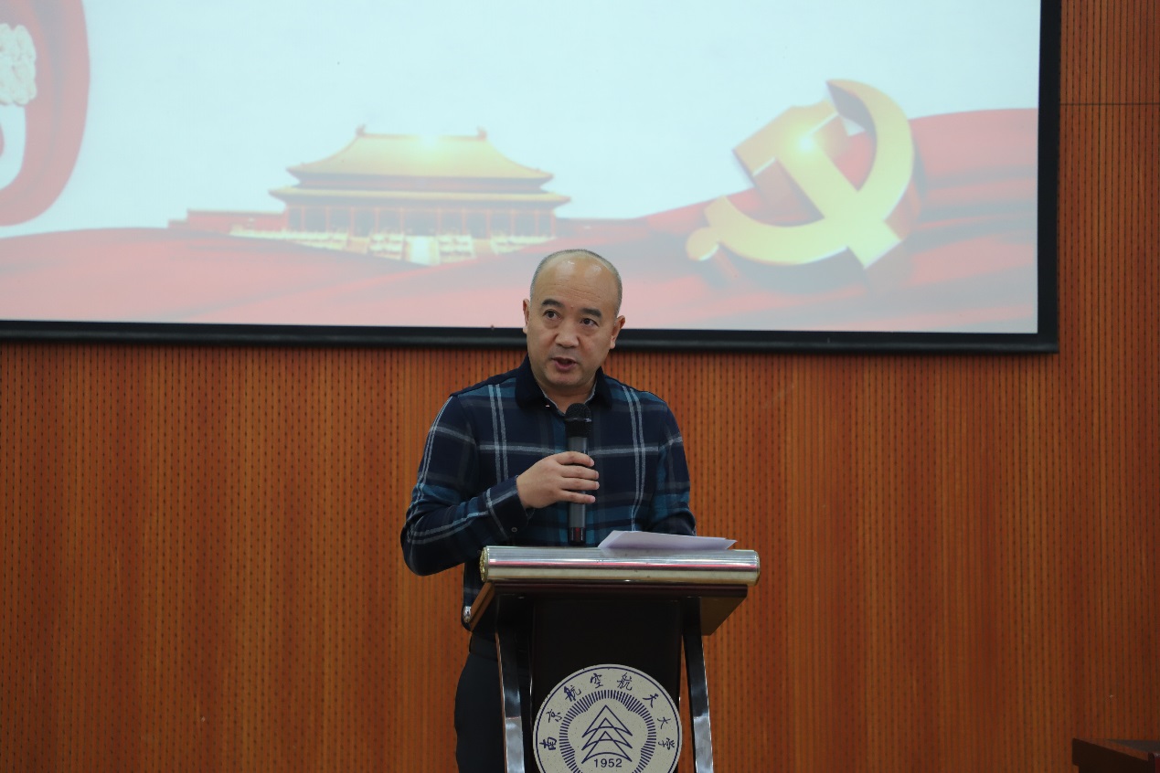 随后,学院党委书记刘建成书同志为新成立研究生纵向党支部支部书记授旗,并代表学院党委讲话。