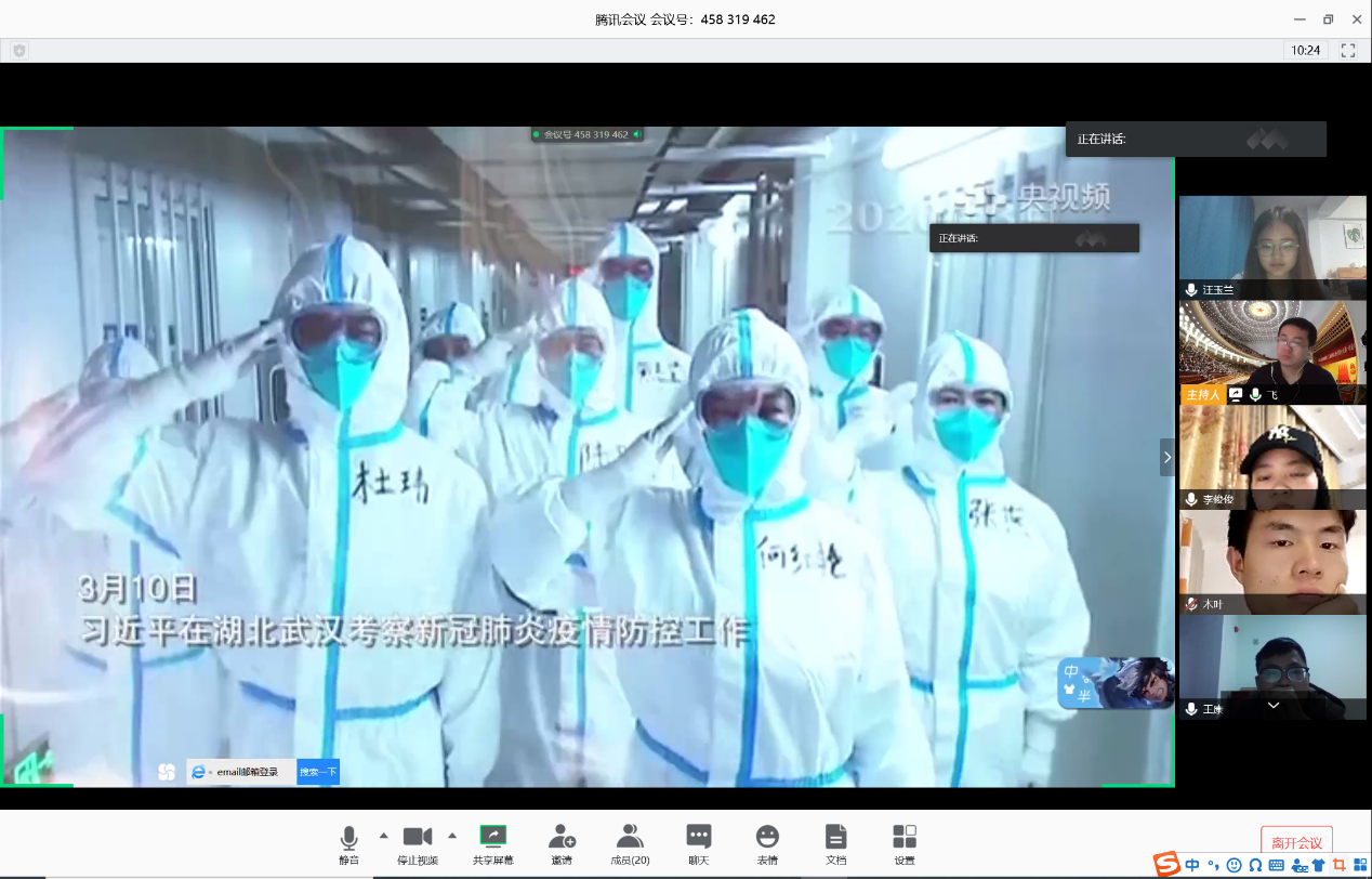 曹挺同志分享了他在抗击疫情第一线的所见所感,他讲述到,这是一次很特殊的经历,所有感触可以分为以下几点与我们一起分享:“虽然我们都是90后,都是年轻的一代,很多人都对90后持有不认可的观点。然而通过时代的改变,现在90后也承担起相应的责任,相信年轻一辈都可以在自己岗位上发光发热。其次,通过这次疫情深感武汉人民的不易,他们内心世界的建设需要被社会重视,他提倡到,若身边有武汉人员的同事或朋友,给他们心理以一定的关怀,保护他们的内心世界。不必过多关注医护工作人员的辛苦,这是他们的职责所在。最后通过此次疫情,真切感受到祖国的强大,疫情发生以来,在短时间内,全国物资全部运往武汉、驰援武汉,医务工作者的生活和工作得到了保障,才能更好地服务人民。习近平对此次疫情非常重视,也经常关注90后,希望大家能多响应习总书记的号召,让自己的青春在党和人民最需要的地方,开出最绚丽的光。”