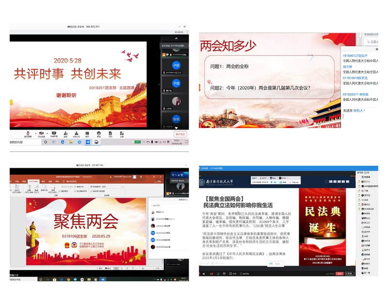 2020年5月21日,全国两会在北京召开。为引导学生关注“两会”动态,提升政治素养,深入贯彻党的教育方针。taptap点点官方网站各团支部于5月22日陆续进行线上团日活动,以“共学两会,共话成长”为主题开展信仰公开课。