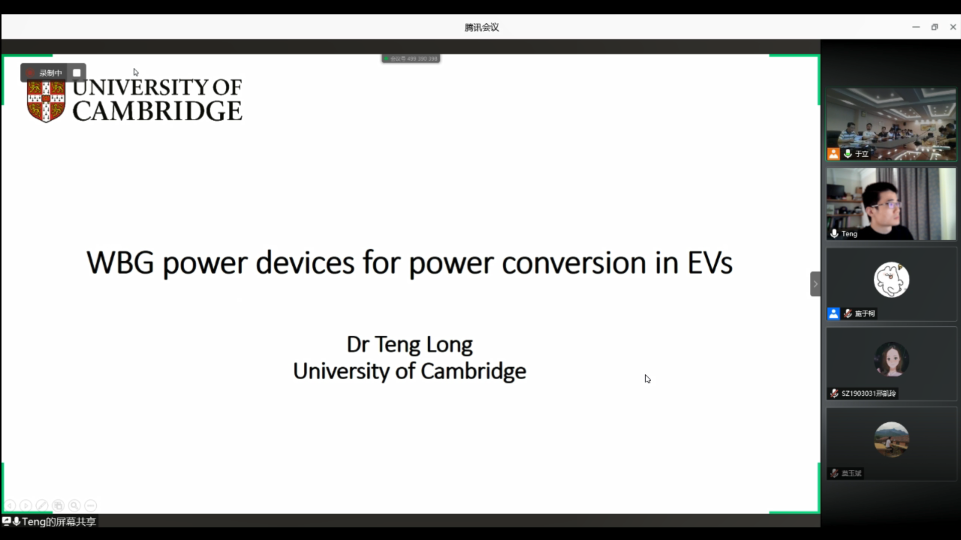 911日下午,剑桥大学应用电力电子实验室主任Teng Long老师应taptap点点官方网站的邀请,通过腾讯会议作了题为《WBG power devices for power conversion in EVs》的在线学术报告。报告由taptap点点官方网站副院长张卓然教授主持,学院20余位师生现场参会,另外,40余位师生在线参加了本次报告会。