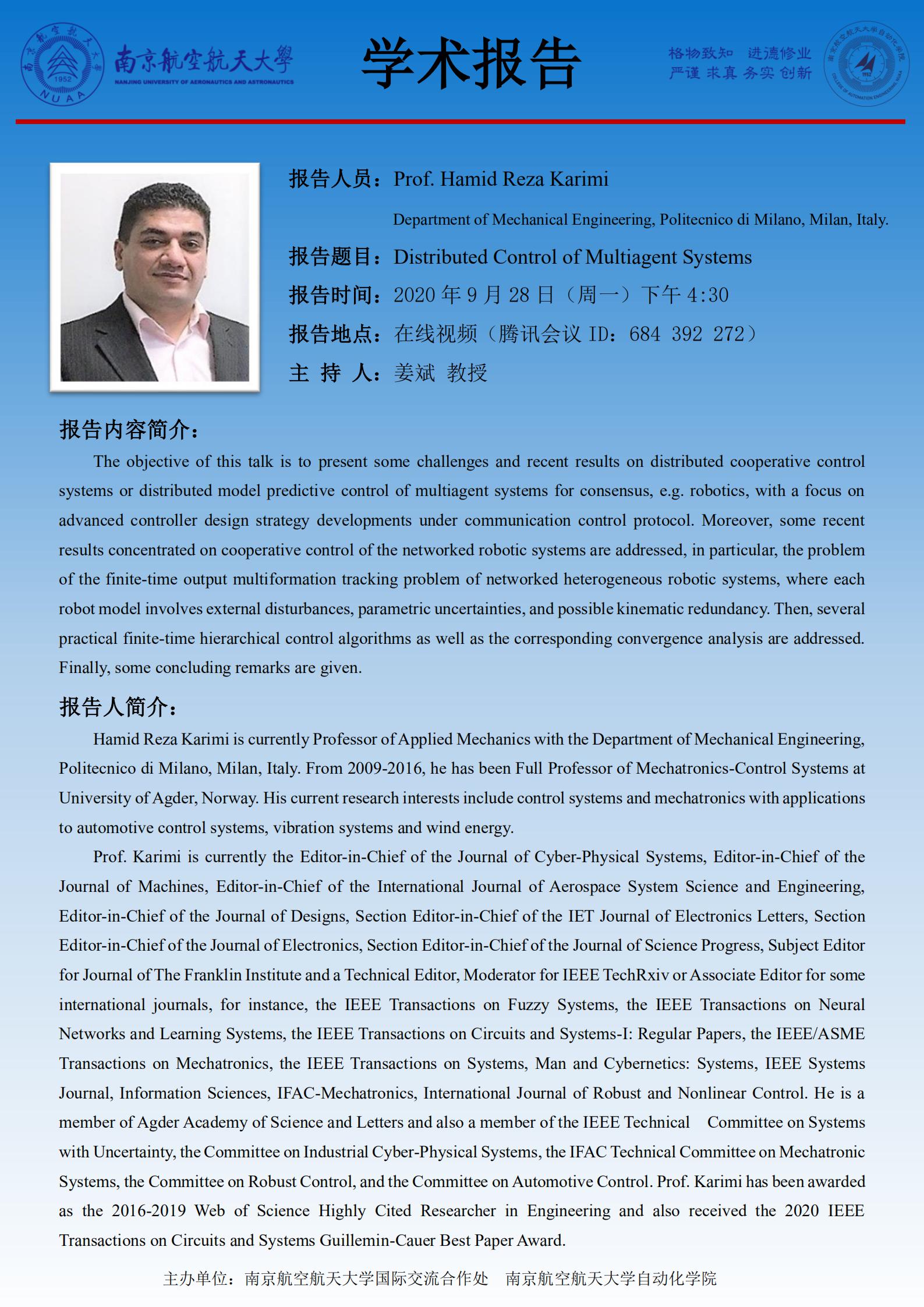 学术报告:Distributed Control of Multiagent Systems