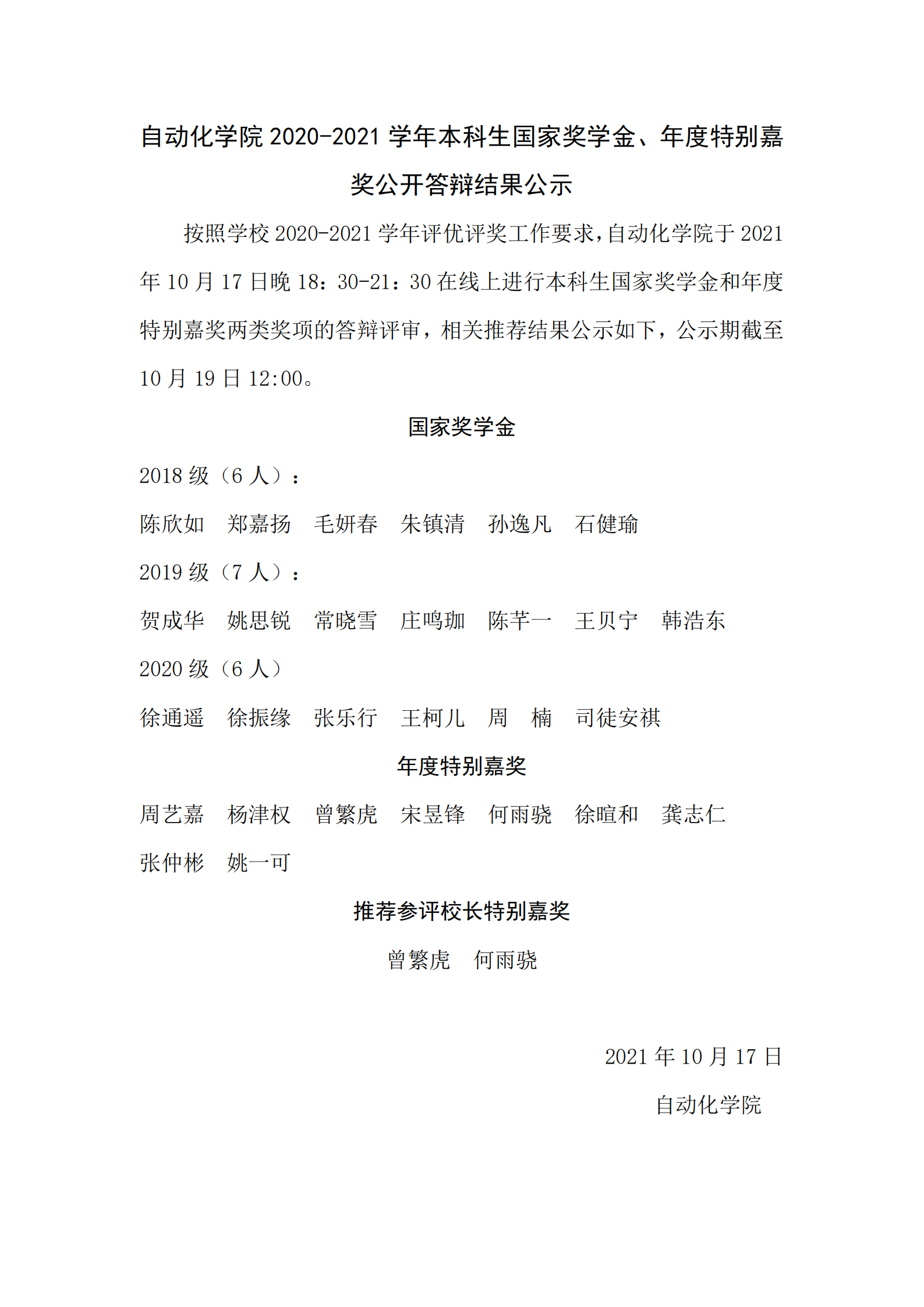 taptap点点官方网站2020-2021学年本科生国家奖学金、年度特别嘉奖公开答辩结果公示