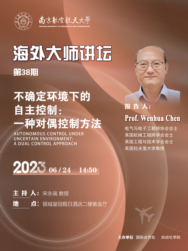 【海外大师讲坛·第38期】不确定环境下的自主控制:一种对偶控制方法
