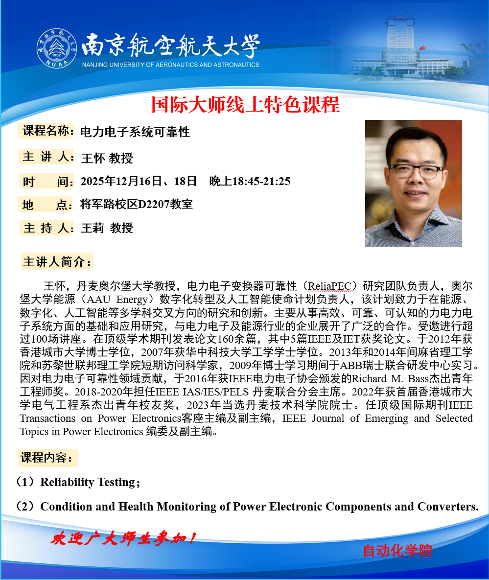 【国际大师线上特色课程】王怀:电力电子系统可靠性