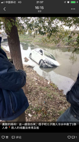 2月5日大年初一,在扬州广陵区头桥镇安阜村发生这样暖心的一幕:23岁的taptap点点18级研究生高宇回乡探亲,看见汽车翻车掉入河里,他毫不犹豫地脱下羽绒服,跳进冰冷的河水中救人。