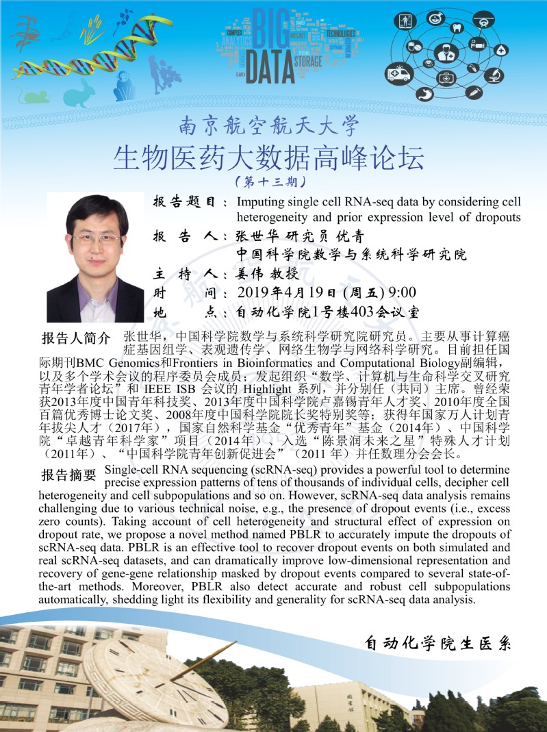 学术报告:生物医药大数据高峰论坛-第十三期