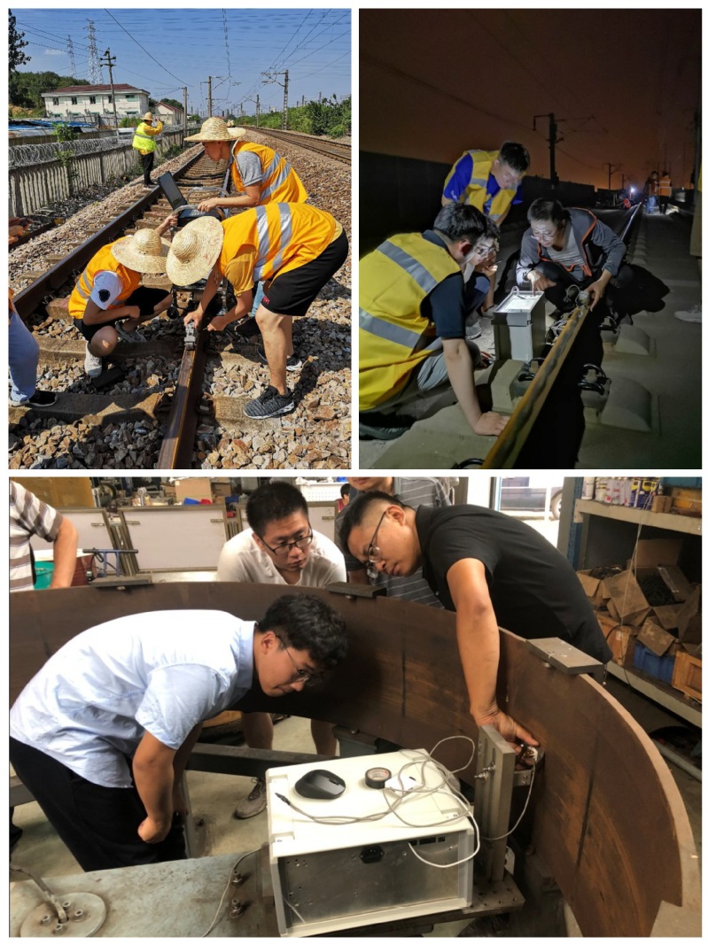这个暑假,高速载运设施无损检测监控技术工信部重点实验室的师生们在王平教授的带领下坚持工作,实验室承担的多个国家重点研发计划课题进展顺利。其中国家重大科学仪器设备开发专项钢轨顶面缺陷电磁无损检测关键部件研发进入到关键阶段。由于不能影响正常的铁路交通,只能在铁路的天窗期进行实验。“铁路什么时候有空闲,我们就什么时候上。”,王老师带领实验室的师生们顶着酷暑高温奋战在多条铁路线上。气温37℃,体感温度50℃,钢轨温度60℃……这是在实验现场白天的天气条件,身上的衣服湿了又干,干了又湿,大家都被晒黑了,有的晒脱了皮。晚上又要披星戴月,在凌晨人最困顿的时刻进行实验。虽然条件艰苦,但大家手上的工作却从未停下,依旧坚守在自己的实验岗位,挥汗如雨,热火朝天的忙碌着。通过一个暑假的广泛实验,目前样机已经通过了中国铁道科学研究院的评审,即将安装于我国最新型的高速铁路探伤车。