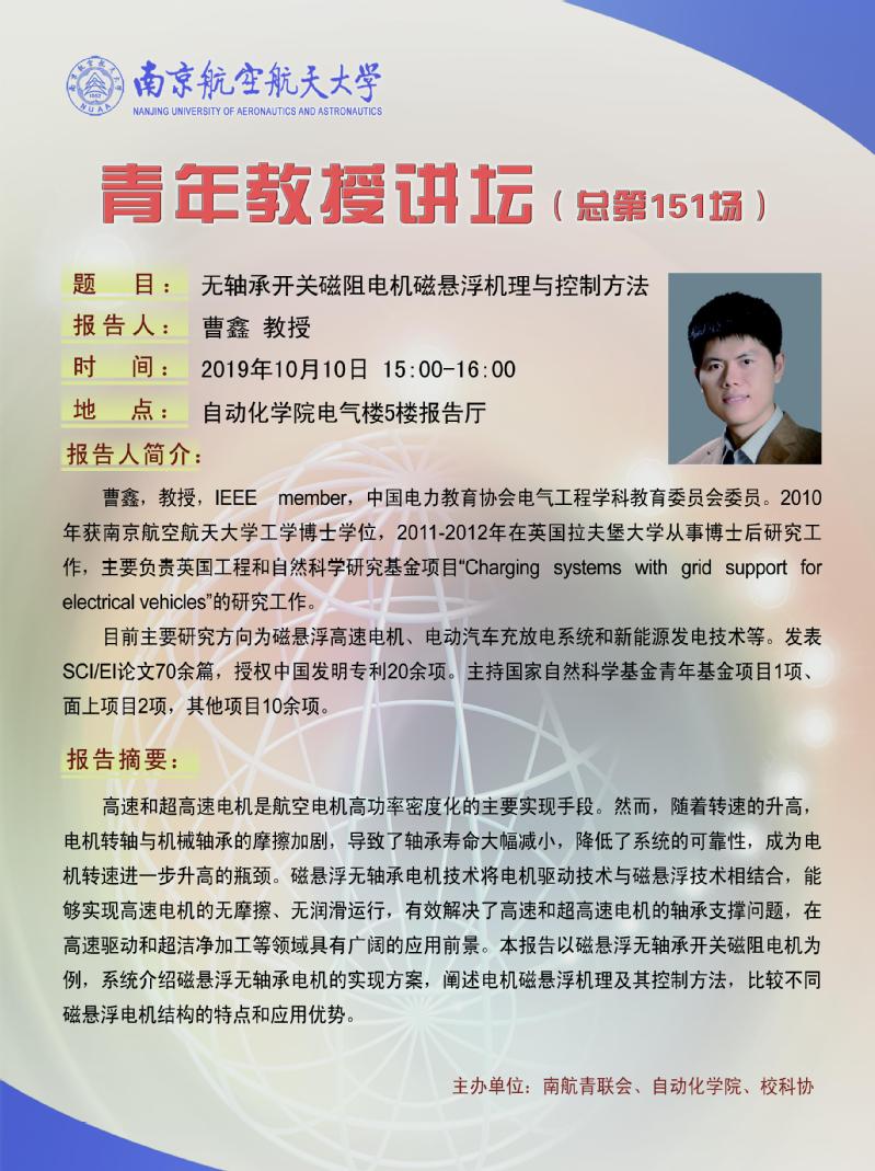 学术报告:无轴承开关磁阻电机磁悬浮机理与控制方法