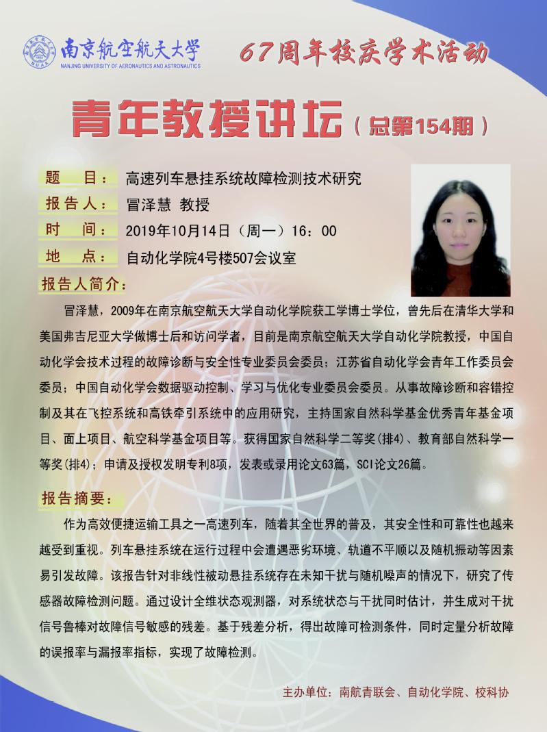 学术报告:高速列车悬挂系统故障检测技术研究