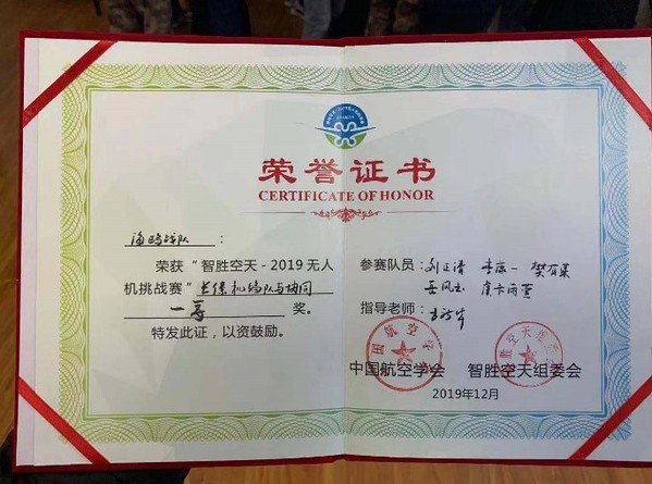 12月6日至8日,“智胜空天-2019”无人机挑战赛在陕西省咸阳市空军工程大学三原校区举行。taptap点点官方网站taptap点点官方网站派出了两只参赛队伍参与挑战,经过两天紧张激烈的角逐和多轮的比拼,由taptap点点王新华老师指导,研究生刘正清、李康一、樊有容、王皓及本科生岳凤玉、虞卞雨萱组成的海鸥战队斩获本次大赛科目四(长僚机编队与协同)一等奖,研究生刘禹、王凯、马梓元、张志宏及本科生吴玲燕、张研组成的翔飞战队夺得科目一(无人机多目标识别)优胜奖,彰显了taptap点点航空航天特色专业领域的优势和学子的风采。