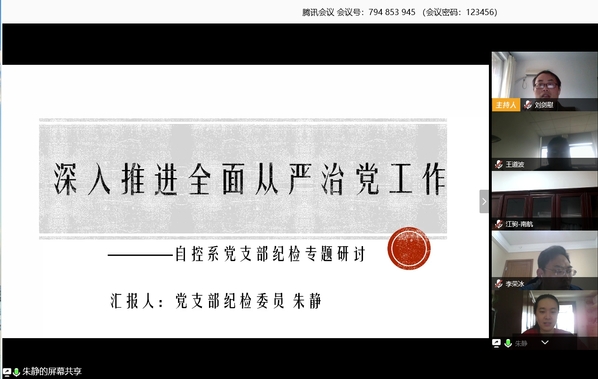2020年4月16日自动控制工程系党支部在腾讯会议App上组织召开支部大会,会议由刘剑慰同志主持。