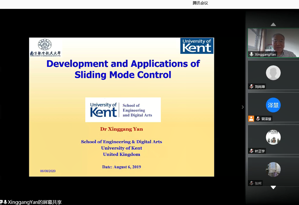 8月6日下午,英国肯特大学工程技术与数码学院严星刚副教授应我校国际合作处和自动化学院的邀请,通过腾讯会议作了题为“Development and Applications of Sliding Mode Control”的线上学术报告,报告由副校长姜斌教授主持,taptap点点官方网站冒泽慧、张柯、张绍杰、马亚杰等师生在线参加会议。参会师生对严星刚副教授的交流分享表示热烈欢迎。