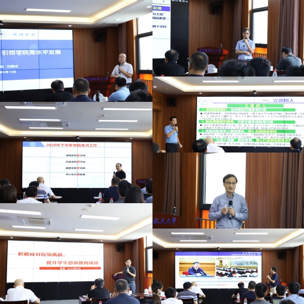 13日上午,学院领导班子成员围绕学院建设发展,就各自分管领域工作进行了专题发言,对基层单位提出的相关问题进行了回应。张跃副书记就学生工作面临的突出问题、针对问题的重点规划分享了学生工作的经验方法;王晓琳副院长就本科教学建设工作重点内容、获得成果进行了分享;陈谋副院长就学科建设、综合改革、信息化建设方面分享了发展思路与措施;宋晓峰副院长就研究生教育工作、国际合作与交流工作等方面进行了总结;张卓然副院长就十三五期间科研工作成果及十四五阶段发展目标进行了分享。