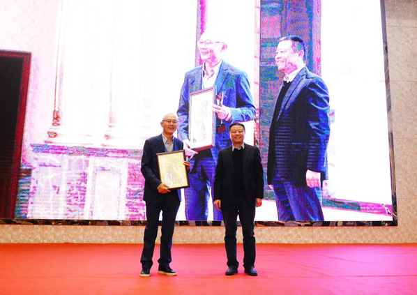 中国特种设备安全与节能促进会秘书长王晓雷先生(右)为林树青先生(左)颁奖