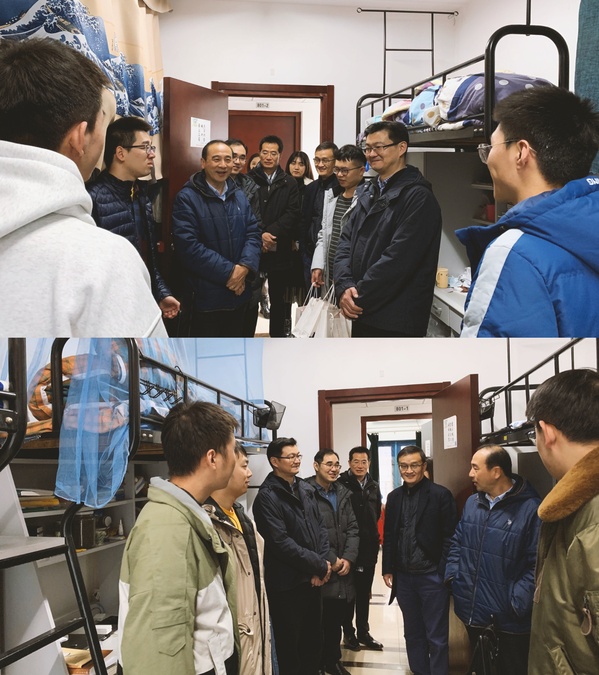 为鼓励考研同学积极迎考,增强考研信心,缓解考研压力,2020年12月10日,taptap点点官方网站党委书记李文雷、院长江驹、党委副书记张跃、副院长王晓琳、副院长宋晓峰、团委书记陈慧云以及本科2017级辅导员肖帆、李瑶一行八人前往学院2017级本科生宿舍,进行走访慰问活动。