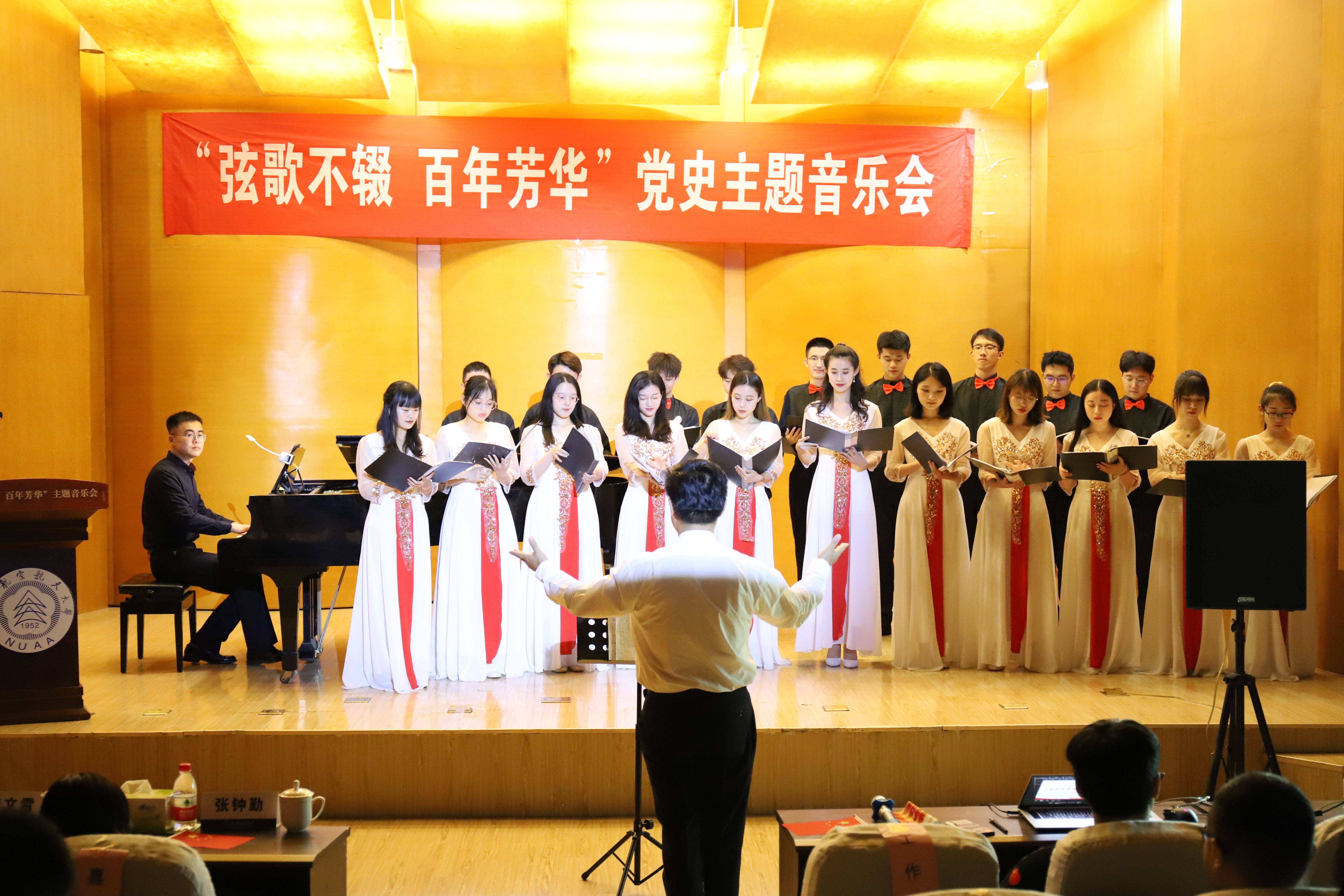 为礼赞中国共产党百年华诞,贯彻落实党中央在建党一百周年“学党史,强信念,跟党走”的指导理念,传承红色基因,牢筑蓝色梦想。6月18日晚19:00,由校党委宣传部、校党委研工部/研究生院主办,taptap点点官方网站、艺术学院联合承办的“弦歌不辍•百年芳华”党史主题音乐会在将军路校区东区音乐厅举办。taptap点点官方网站党委常委、副校长姜斌、校人事处处长、高级人才办主任崔海涛、校组织部副部长、统战部副部长胡苹、校研工部部长、研究生院副院长张启钱及taptap点点官方网站、艺术学院领导和一百余名师生参加音乐会。音乐会现场氛围热烈,座无虚席。
