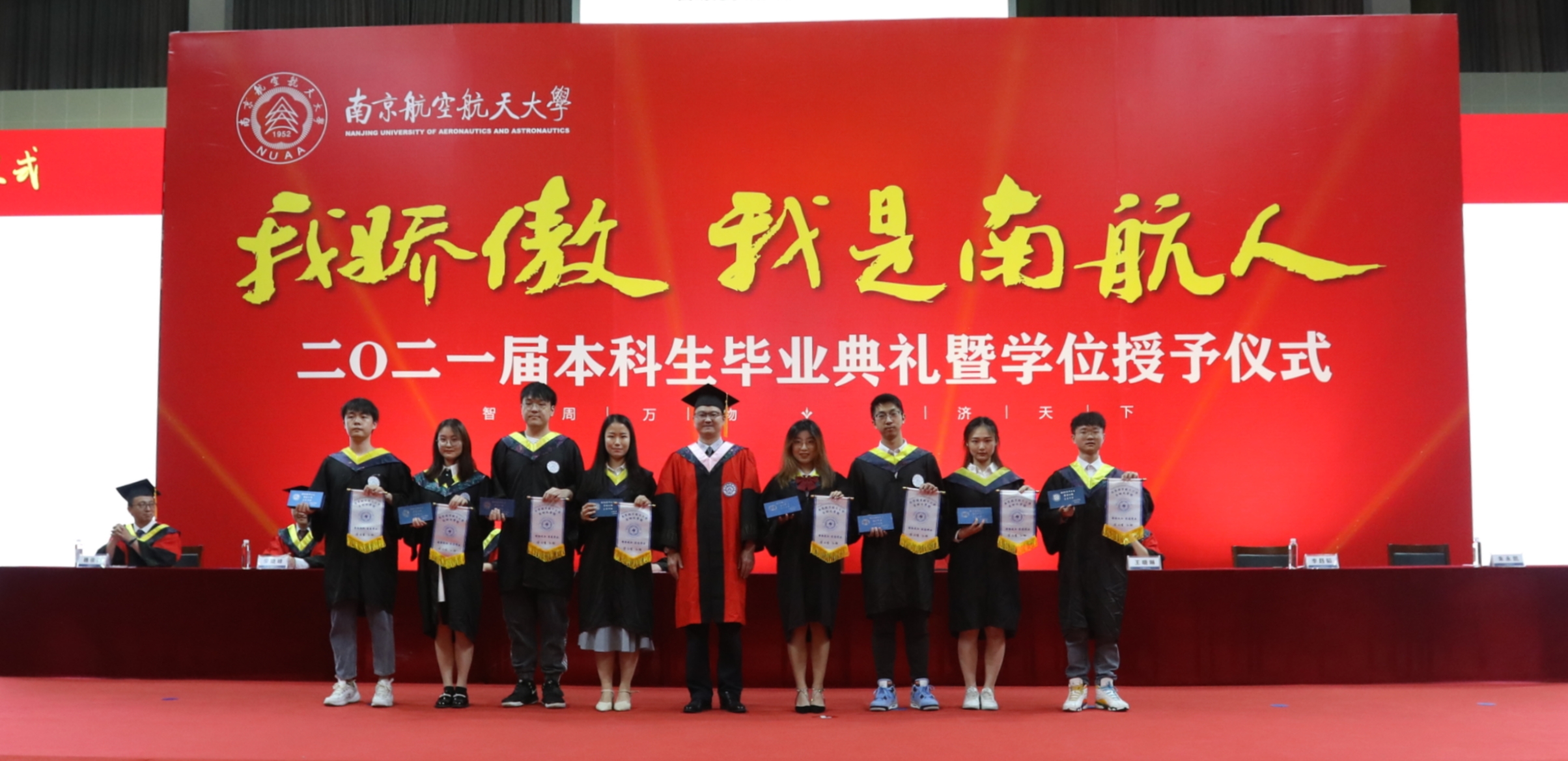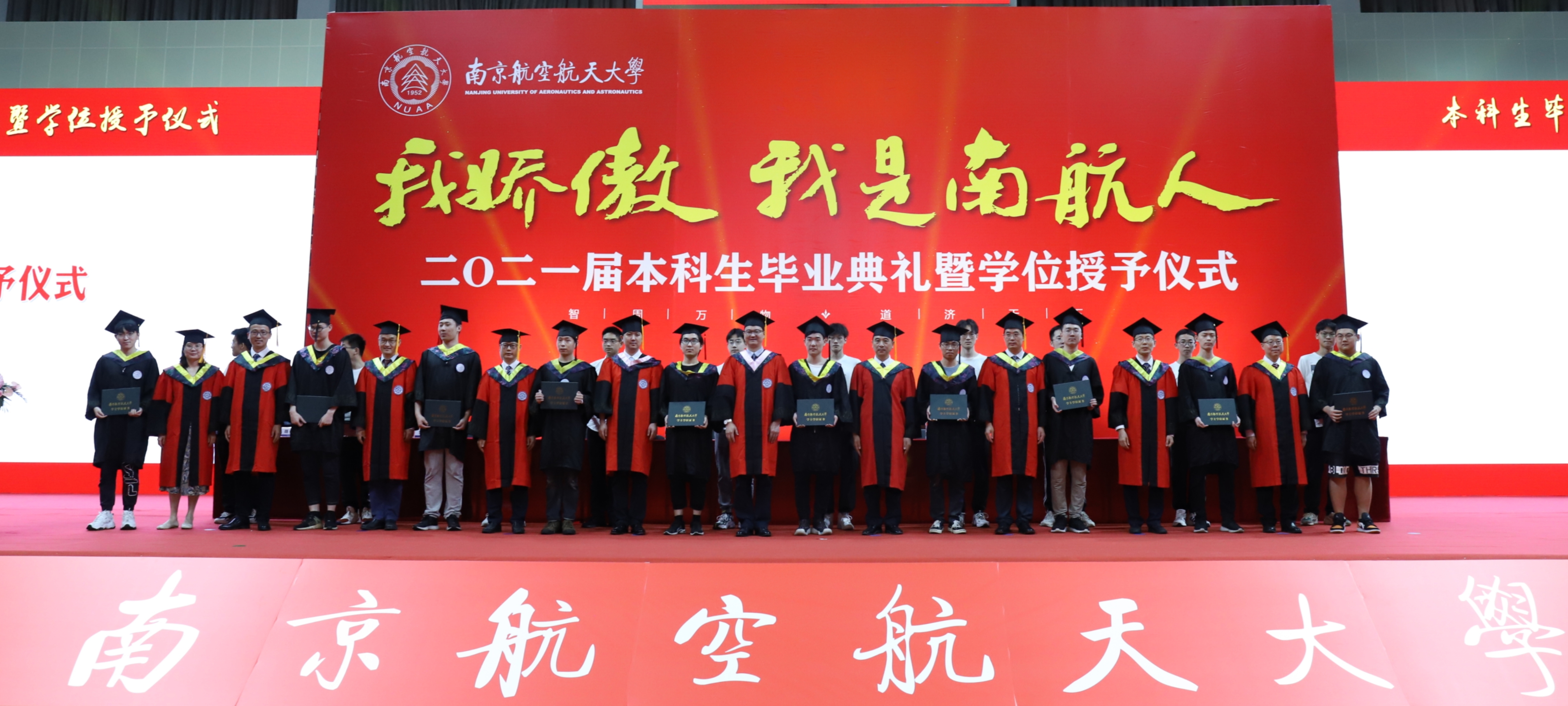 在学士学位授予仪式中,毕业生们身着学士服依次走上主席台,学院领导、院长助理和各系主任为学生拨穗、颁发学位证书,并拍照留念。