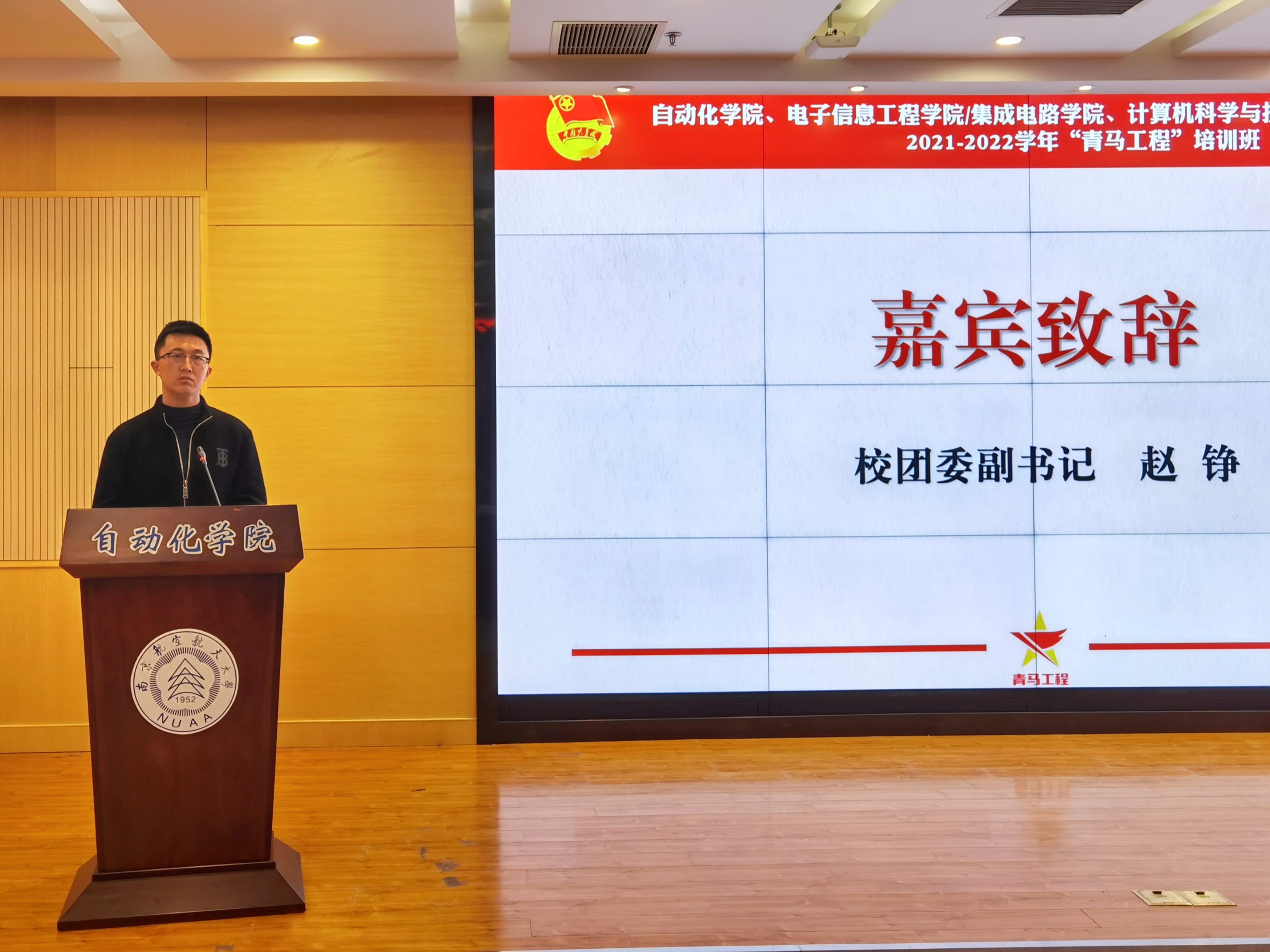 校团委副书记赵铮为开班仪式致辞。赵峥表示,taptap点点高度重视团学工作和学生骨干培养,校团委按照上级团学组织的部署要求,把实施“青马工程”作为taptap点点团员青年思想引领工作的一项重要战略任务长抓不懈,历届青马工程班也取得了显著成就。赵峥对本期青马工程学员们寄予了厚望,他强调新时代青年应该树立远大理想,坚定理想信念,自觉承担起时代使命,要以青马工程为起点,创造一番不凡的青春作为。