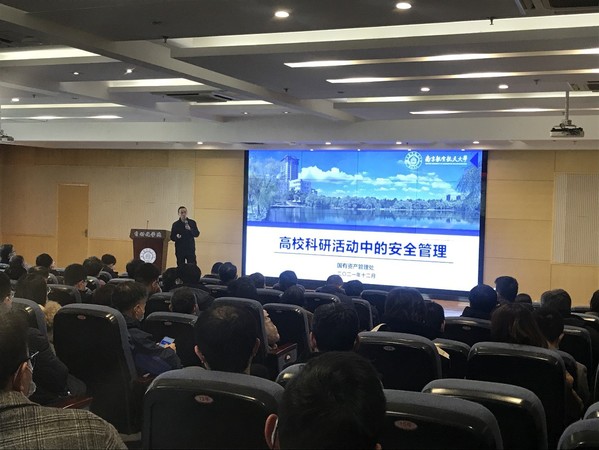 会上,阎志军作题为《高校科研活动中的安全管理》的专题报告。他列举了近年来国内高校实验室发生的事故案例,结合高校实验室的特点剖析了事故产生的原因;解读了安全生产法律法规和上级政策文件要求,介绍了学校实验室安全相关的规章制度和安全管理体系;重点介绍了学校实验室的安全通识和高风险物品使用注意事项。他强调,安全意识是实验室安全的关键,导师和学生要树立安全意识和自我保护意识,要将被动式“要我安全”转变为主动式“我要安全”。