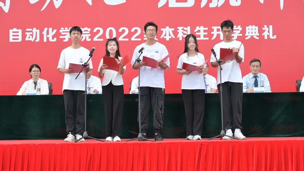 典礼在激昂的国歌声中开始。适逢九一八事变91周年,奏唱国歌后集体默哀一分钟,深切表达了对革命先烈的缅怀,勿忘国殇,振兴中华,自动化学子自当赓续红色基因,传承蓝色梦想。
