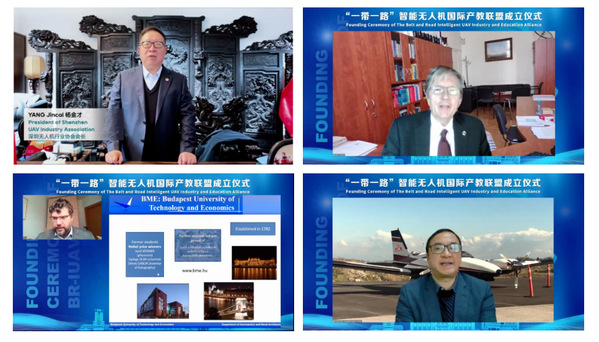 深圳无人机行业协会会长杨金才,匈牙利布达佩斯技术与经济大学Gabor Jozsef Stepan教授、David Sziczorak教授,加拿大航空学院院长John Ling分别代表中外联盟成员单位进行了发言,对联盟的成立表示祝贺,并对后疫情时代如何进一步加强联盟成员在无人机领域的合作与交流表达了各自的观点和看法。
