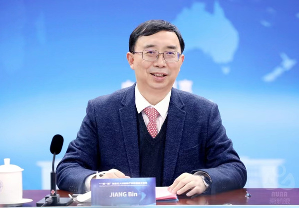 之后,在线上线下全体参会代表和嘉宾的见证下,单忠德、姜斌携中方发起单位代表以及外方发起单位代表共同倒数,点亮联盟标识,标志着“一带一路”智能无人机国际产教联盟正式成立。